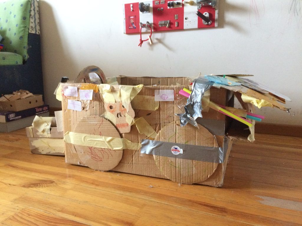 How to make: get a box size of your toddler, and put him or her inside. You can cut out some windows beforehand if you feel like it, but basically you don’t need to do anything else. Throw in some crayons, toy cars, or the plush toys to give their imagination a little kickstart.