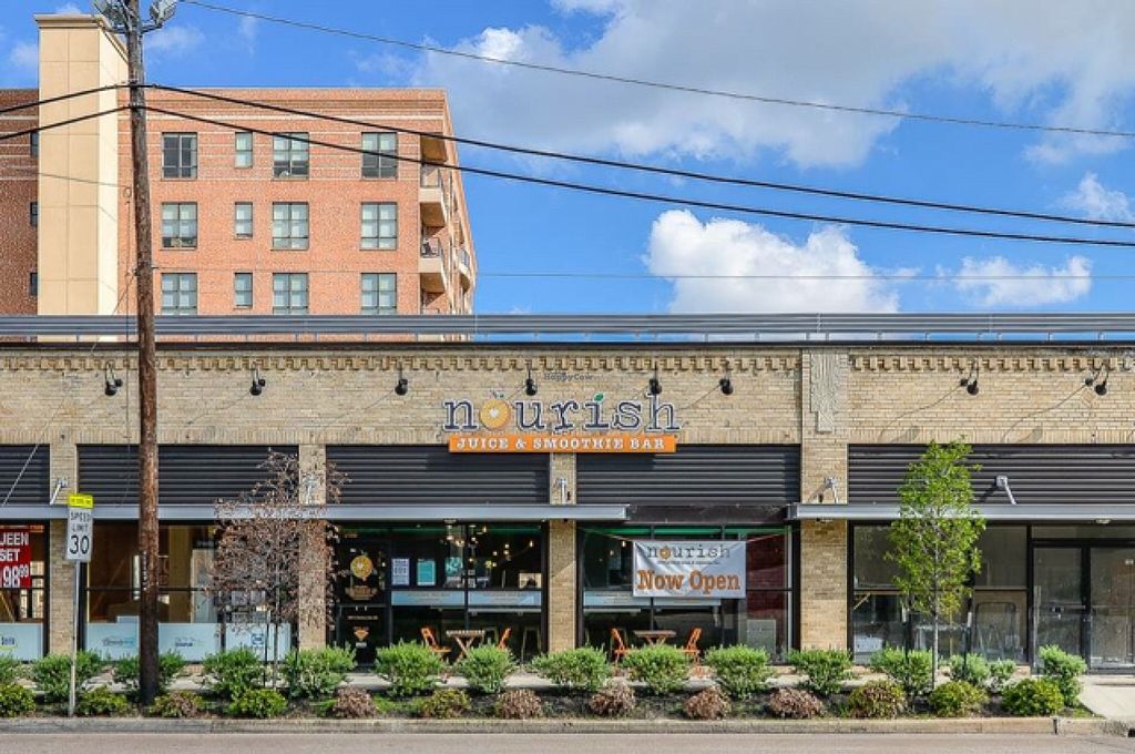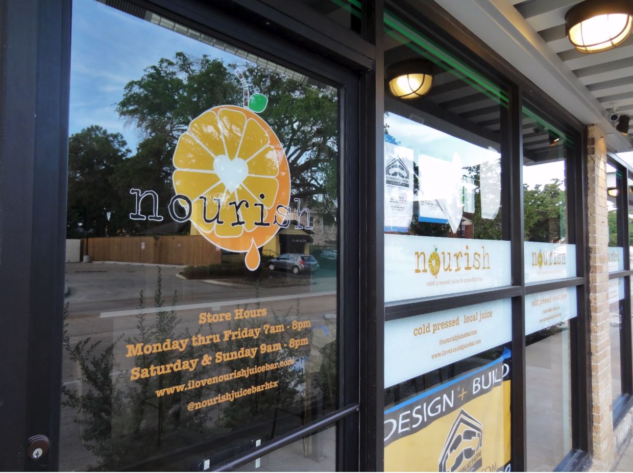 nourish - new juicebar on West Gray - July 2015 photo of store front - entrance prior to opening